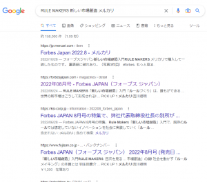 一方過去に取り上げられたメルカリの場合はRULE MAKERS 新しい市場創造 メルカリでグーグル検索すると結果にバックナンバーのページが出てきます。